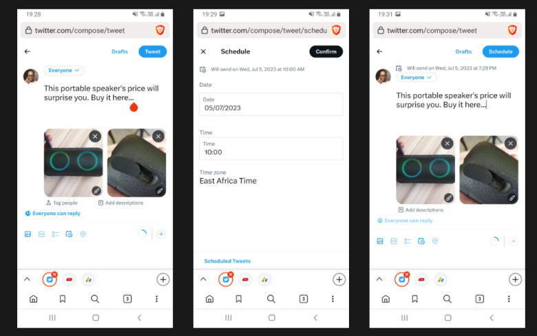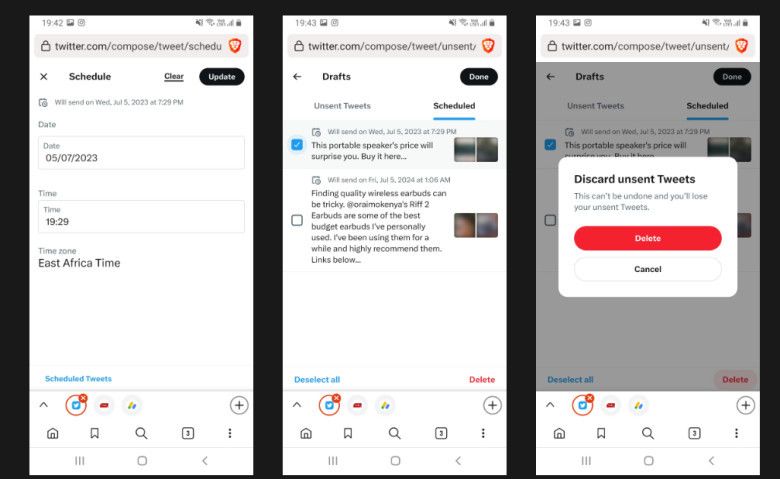 Favori mobil tarayıcınızdan tweetlerinizi zamanlamak için aşağıdaki adımları takip edin: